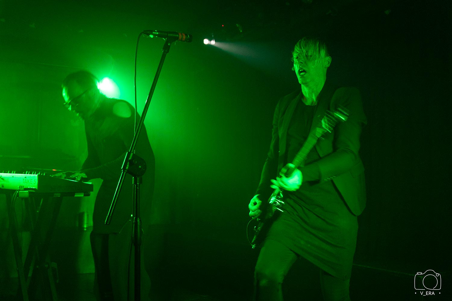 Σημαντικό στοιχείο του live που απολαύσαμε, ήταν ασφαλώς και η σκηνική παρουσία των δύο μελών. Ο μεν Sean χόρευε με ρομποτικές κινήσεις άλλοτε πάνω από τα synths του και άλλοτε κάνοντας μικρές βόλτες μακριά από αυτά, ενώ ο Shawn, που ήταν προφανώς πιο “ελεύθερος” να κινηθεί, σάρωνε τη σκηνή με την κιθάρα, μιλούσε με το κοινό και ζητούσε το χειροκρότημα και τη συμμετοχή του.